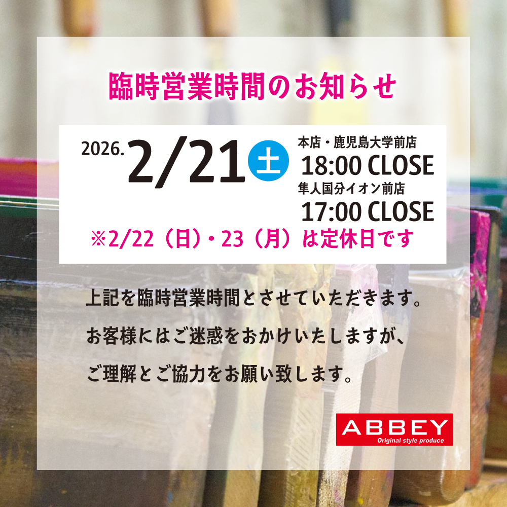 2026.2.21(土)臨時営業時間のお知らせ