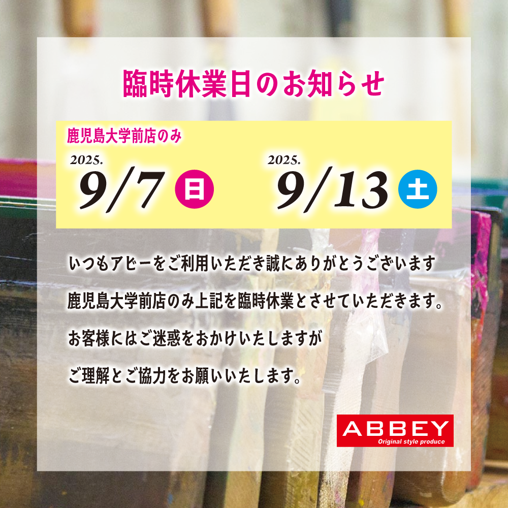 2025.9月 鹿児島大学前店臨時休業のおしらせ