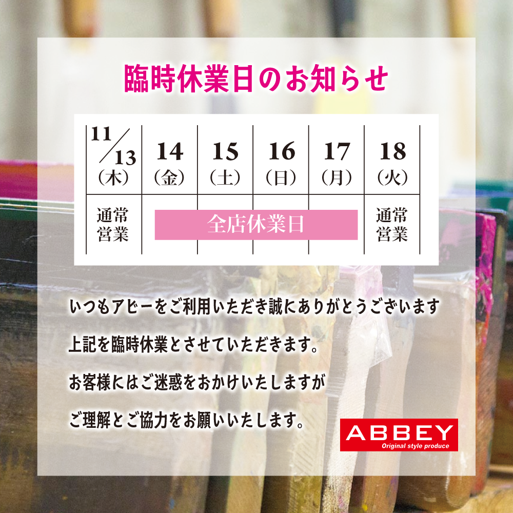 2025/11/14〜17 臨時休業のお知らせ